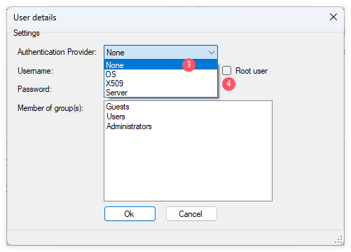 4、勾选Root user;