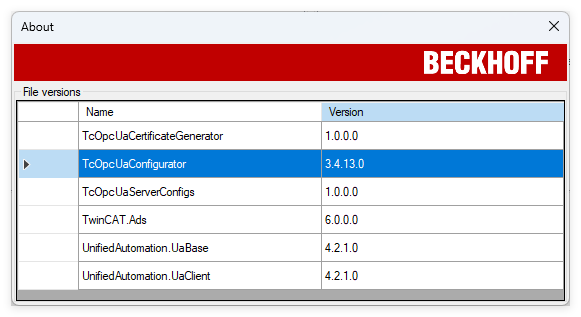 以上使用的TwinCAT OPC UA Configurator的版本如下图