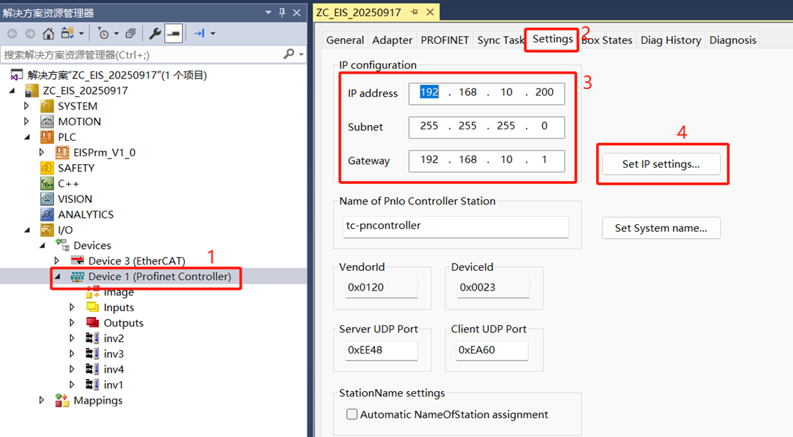 这里的Setting里面的IP,笔者认为是倍福实现Profinet主站功能,虚拟出来的虚拟IP。而Profinet主站和从站的通信,都会经过虚拟IP进行数据中转。(笔者个人分析,如有错误还请指正)