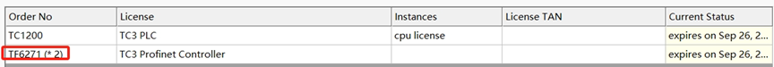 TF6271授权的数量,是根据所用Profinet主站的数量决定的,一个网口对应一个主站。假如使用TF6271时,只采购了一个主站授权,但是出现了上图TF6271(*2)的情况,此时就必须再次激活一个临时授权,因为系统已经默认需要两个主站授权,这样会导致永久授权出现数量不够的问题。