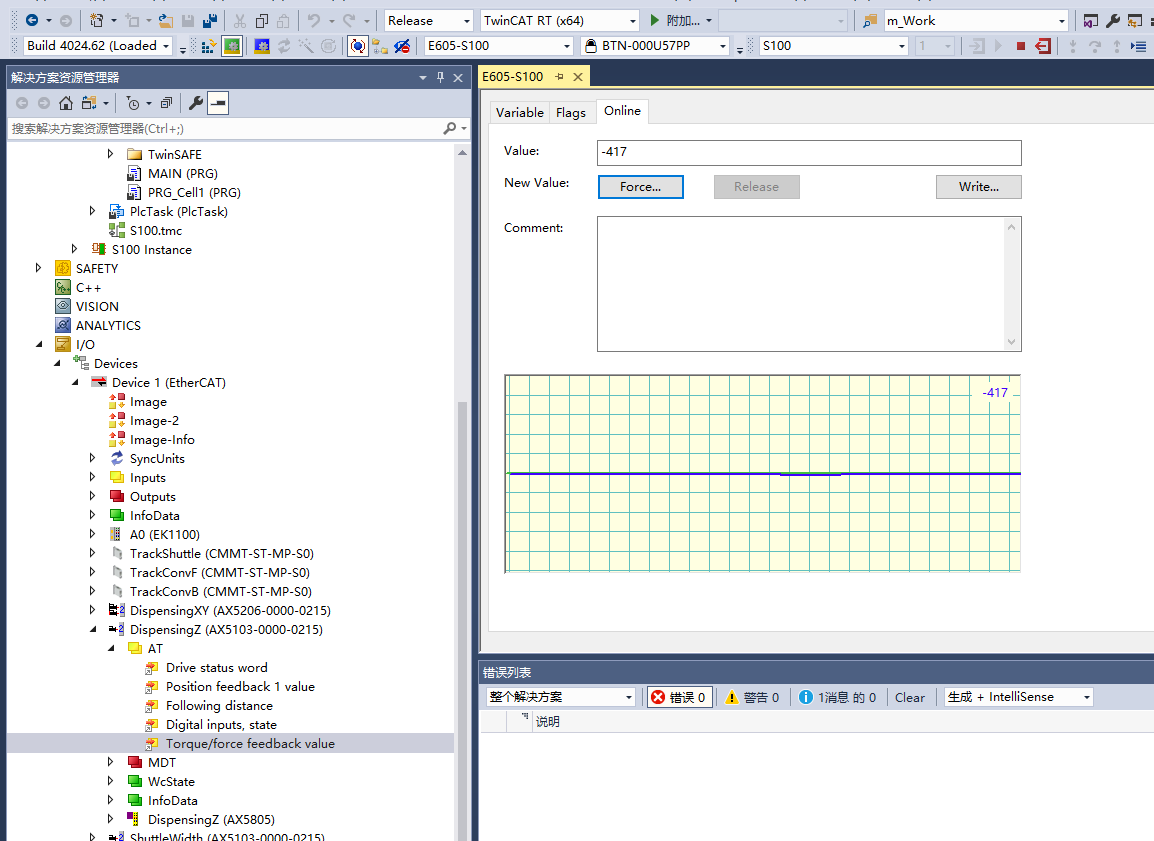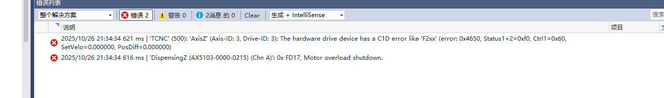 AX5103带倍福电机做垂直轴,上使能后静止一段时间,就会出现报错:The hardware drive device has a C1D error like ‘F2xx’(error:0x4650)