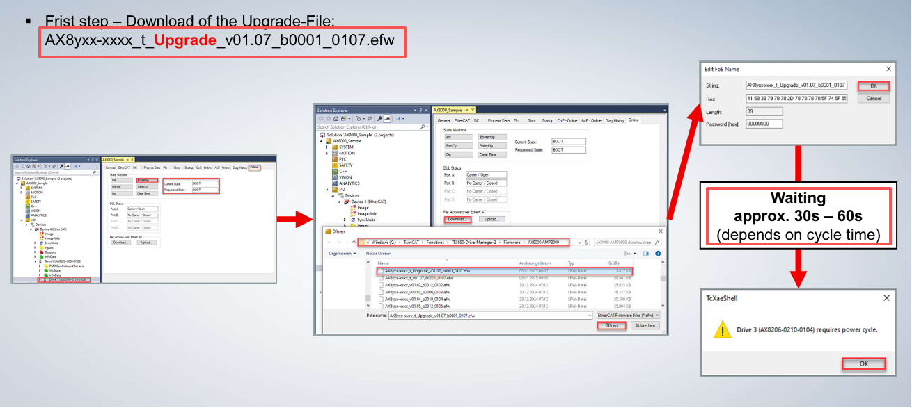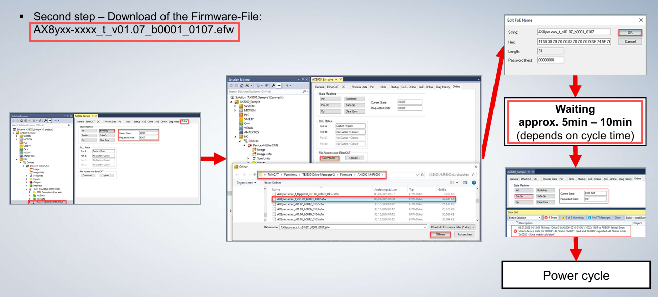 2. AX8000伺服驱动器firmware升级到1.0.7的操作分为两步(1.0.7版本有两个对应的文件);