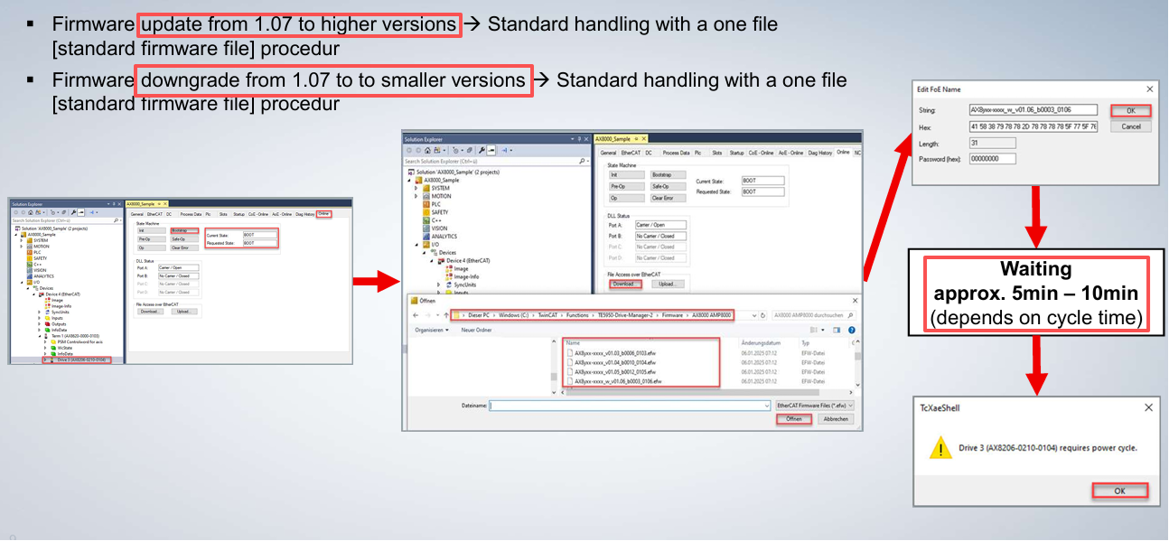 3. AX8000伺服驱动从firmware 1.0.7的降级,以及AX8000伺服驱动从firmware 1.0.3~1.0.6的升级和降级的操作只要操作一步;