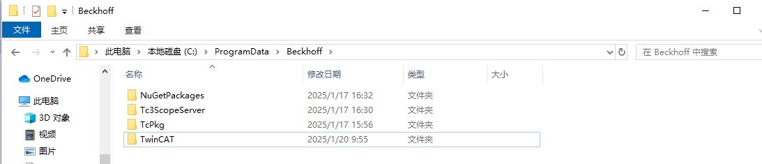 TwinCAT 3.1.4026对于Twincat的根目录进行了修改,现在Twincat的文件夹位于C:\ProgramData\Beckhoff