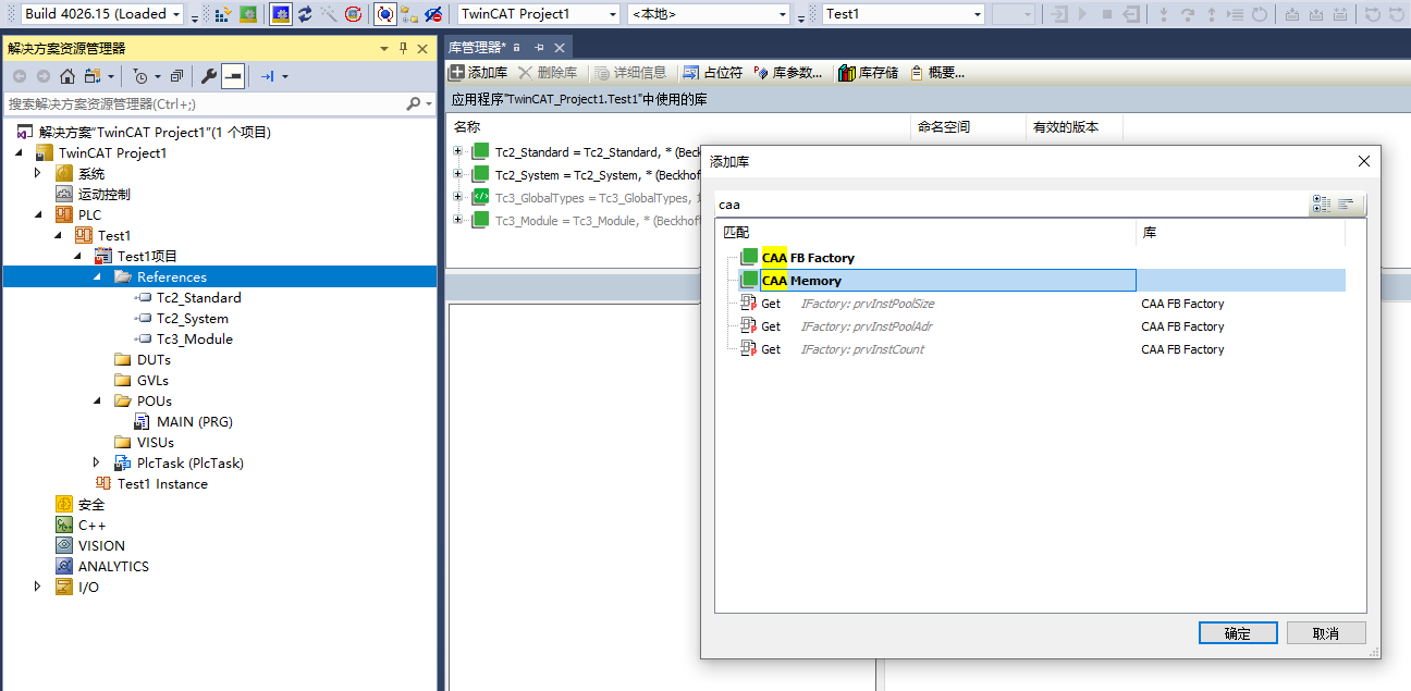 最后,保存device.XML,关闭TwinCAT软件,重新打开原来的项目之后就能搜索到CAA Memory库并添加了