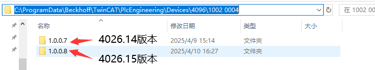 如果大家有更新过TwinCAT 3.1.4026版本的情况,那么路径下会有多个文件夹,需要进入最高版本的文件夹,本例即1.0.0.8文件夹
