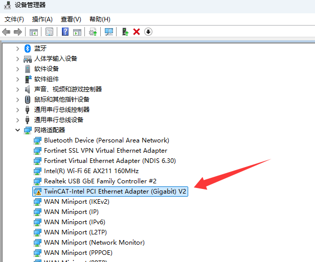 安装完TwinCAT 4026版本后,intel I219 网卡驱动正确但是显示黄色感叹号。