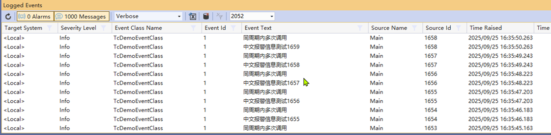 6.查看效果:视图→其他窗口→TwinCAT Logged Events