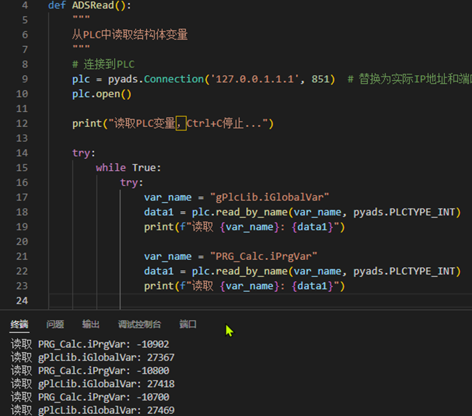 4.根据Target Browser中提供的变量信息编写ADS通讯程序;