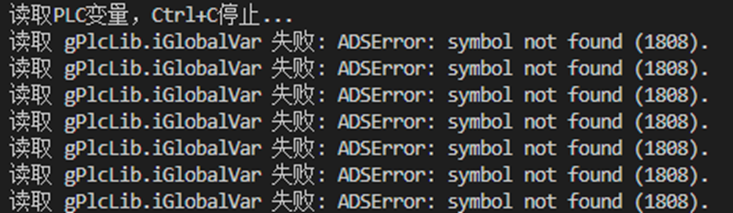 该编译属性会阻止编译器生成对应的ADS Symbol,此时再请求该变量数据ADS Server会反馈如下通讯报警消息。