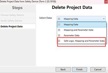 2.删除EL1918中的安全程序(需选择Safe Logic, Mapping and parameter Data选项)