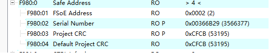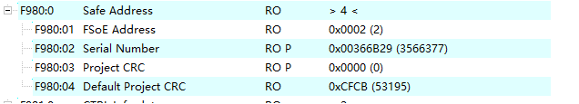 4.对模块重新断上电后可以看到F980:03/04一致,此时安全程序可以正常运行。
