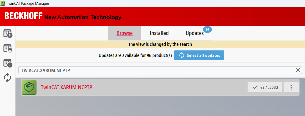 进入Browse选项卡,然后可以直接在输入框中填入TwinCAT.XARUM.NCPTP进行搜索,搜到之后直接安装即可